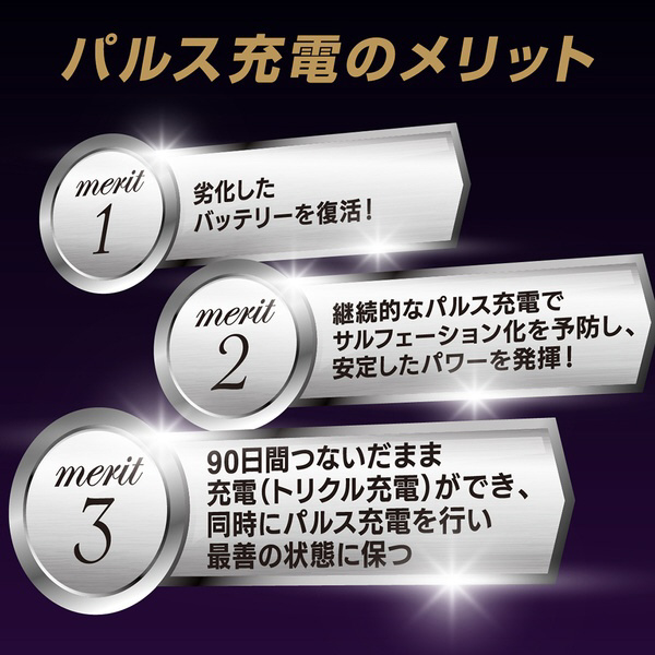 ●パルス充電でサルフェーションを除去しバッテリーのパワーを復活させます。