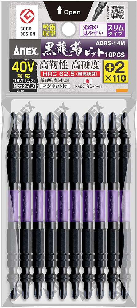 | 商品名 | ANEX 黒龍靭ビット スリム 10本袋入 ANEX ABRS-14M |