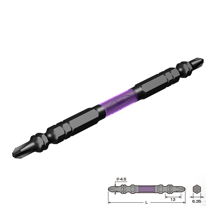 ネジの先端が見やすい両頭スリムタイプ。トーション部で衝撃を吸収。高硬度・高靭性 HRC62.5(最高硬度)。先端欠けに強い。マグネット付。マグネット付。40Vインパクトにも対応(18Vにも対応)