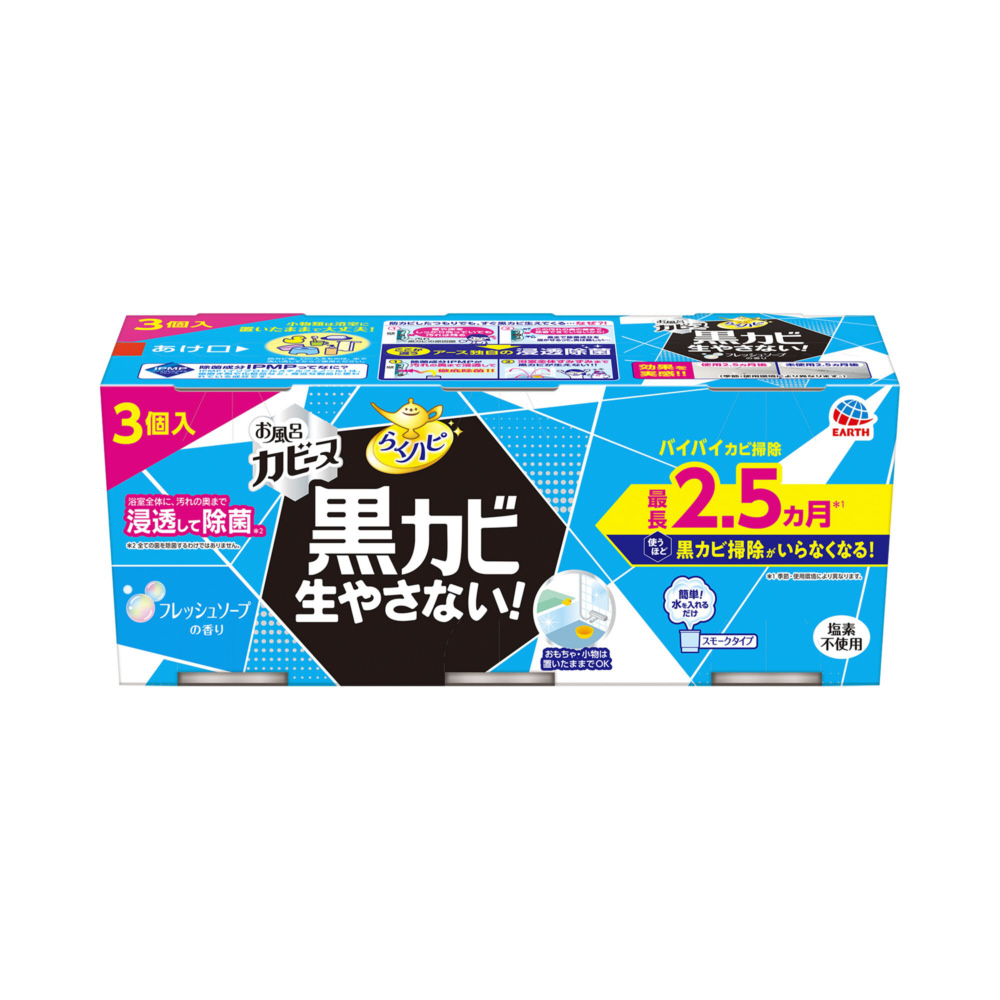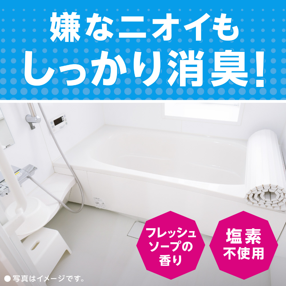 簡単・時短で、2ヵ月に1回でお風呂中すみずみまで防カビができます。フレッシュソープの香り。3個パック
