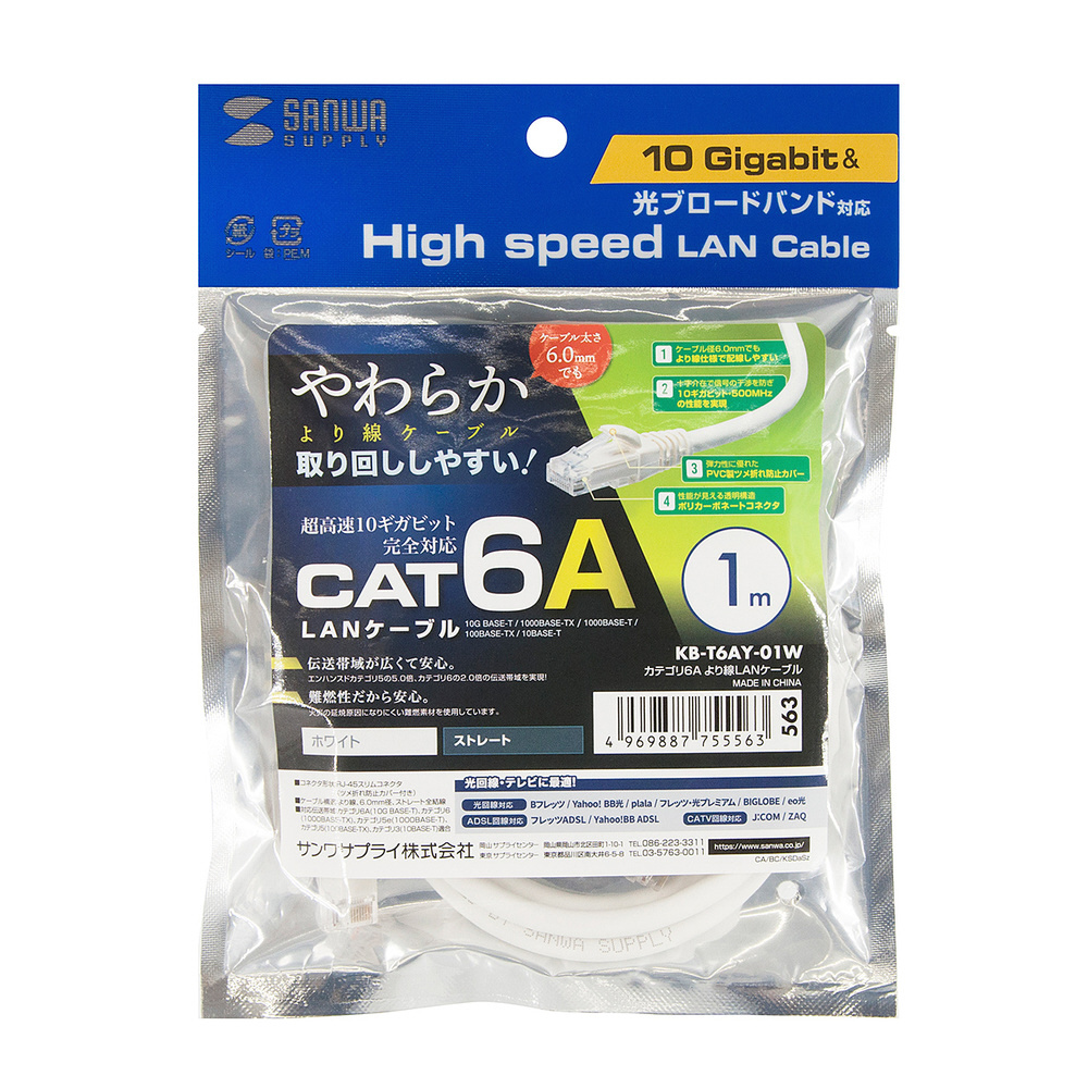 | 商品名 | KB-T6AY-01W LANケーブル ホワイト [1m /カテゴリー6A /スタンダード] |