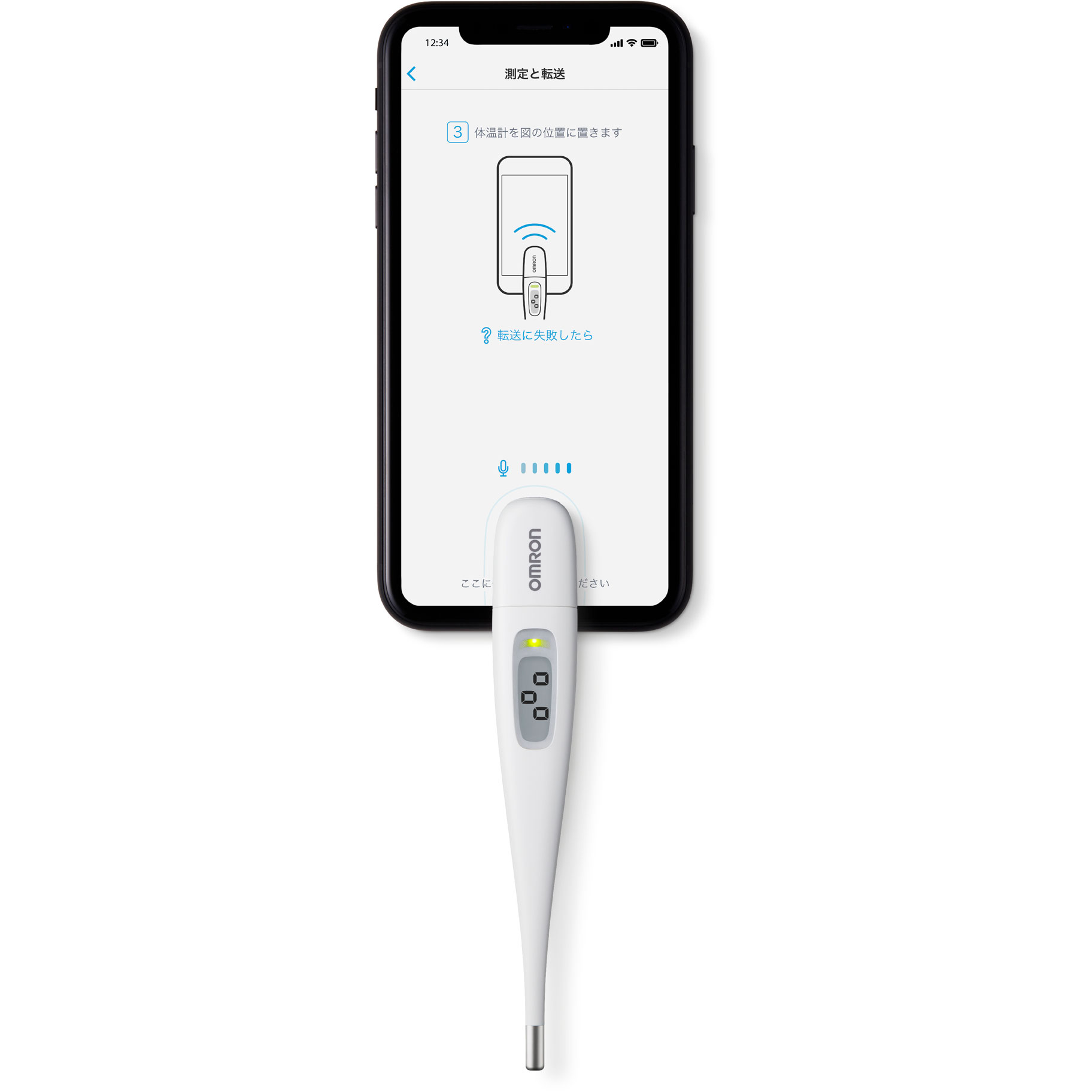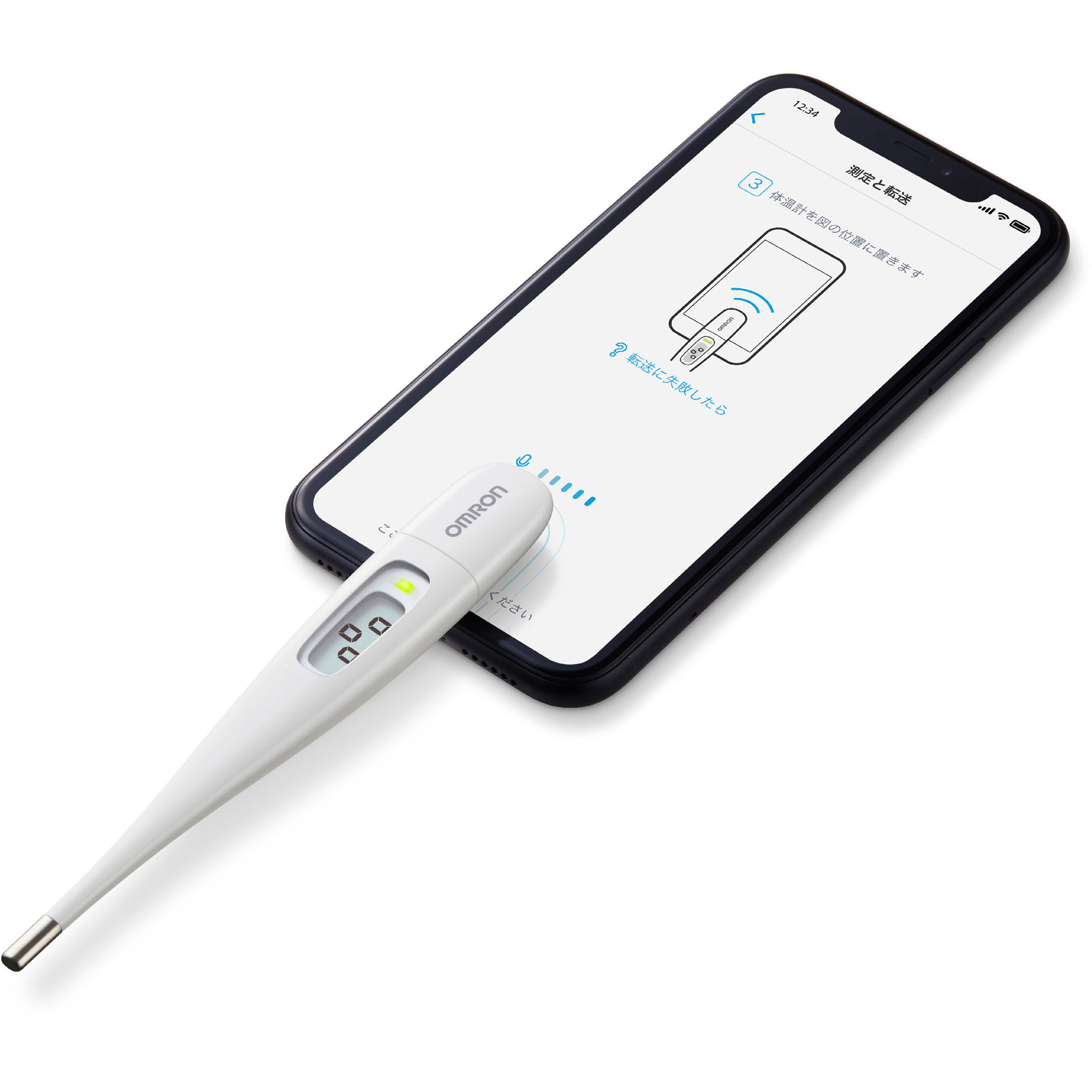 音波通信機能を搭載。iPhone/Android専用アプリ「OMRON connect」に、測定データを転送し、体温の測定データを簡単に確認・管理することができます。