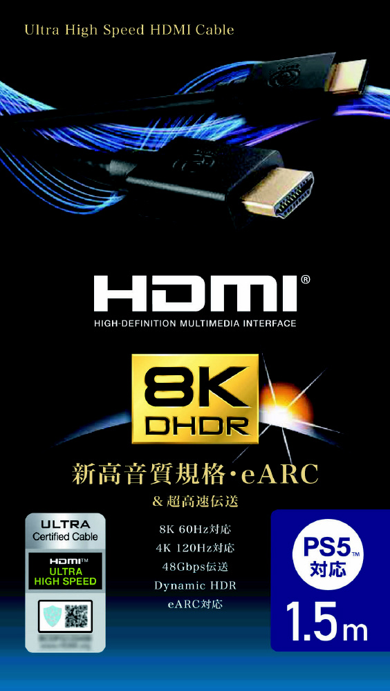 最大48Gbpsの転送に対応した、8KTVや8Kレコーダー・PS5(4K 120Hz)に最適なHDMIケーブルです。
