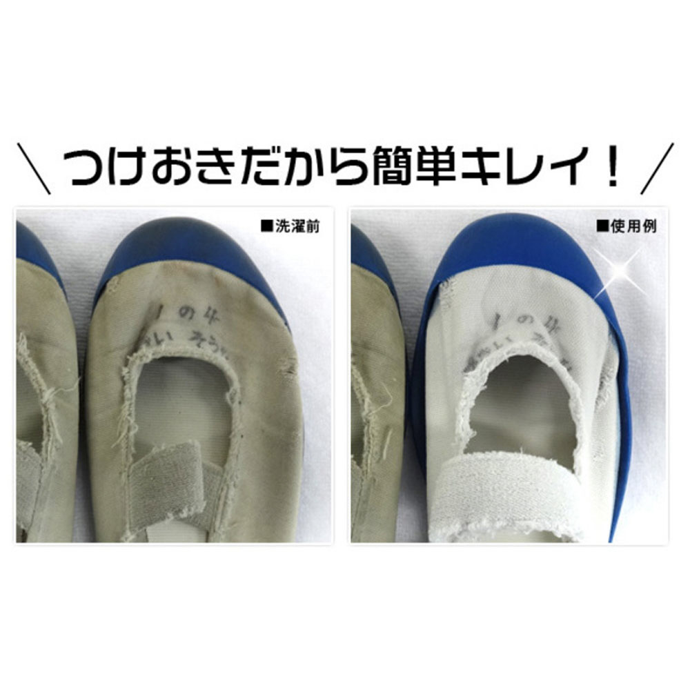| 仕様1 | ■内容量: 100g ■使用量の目安: 4〜5Lの水に8g(約スプーン2杯) 上履きなら約20足分(5Lの水に2足分漬け込み) ■液性: 弱アルカリ性 ■計量スプーン付 |