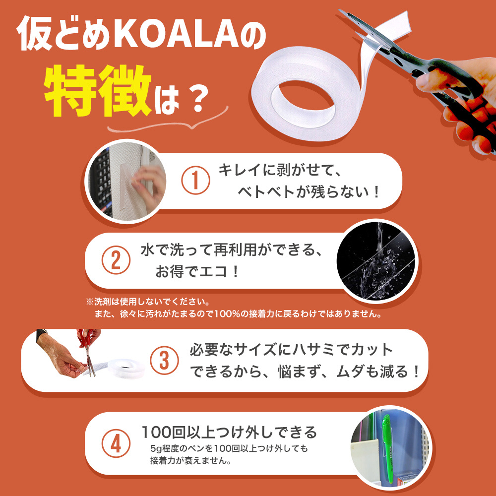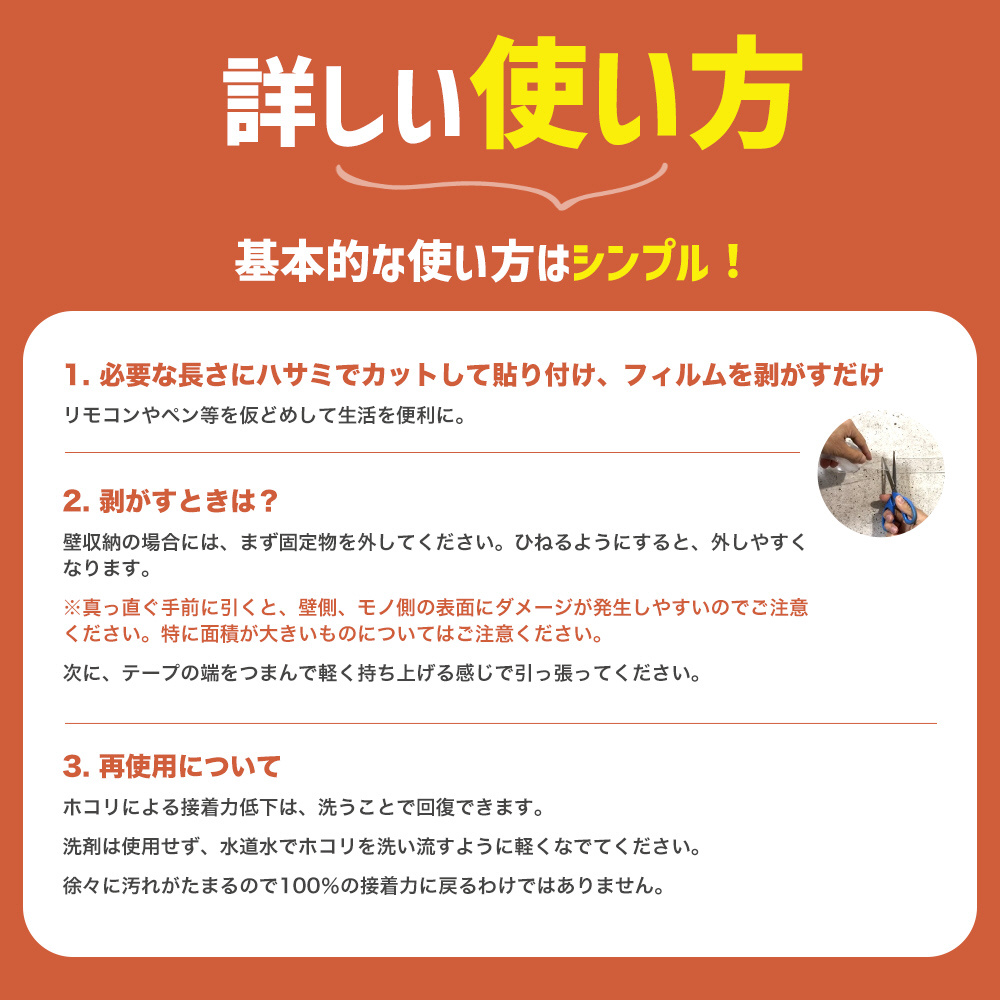・貼った場所にベタベタを残さずにはがせます。