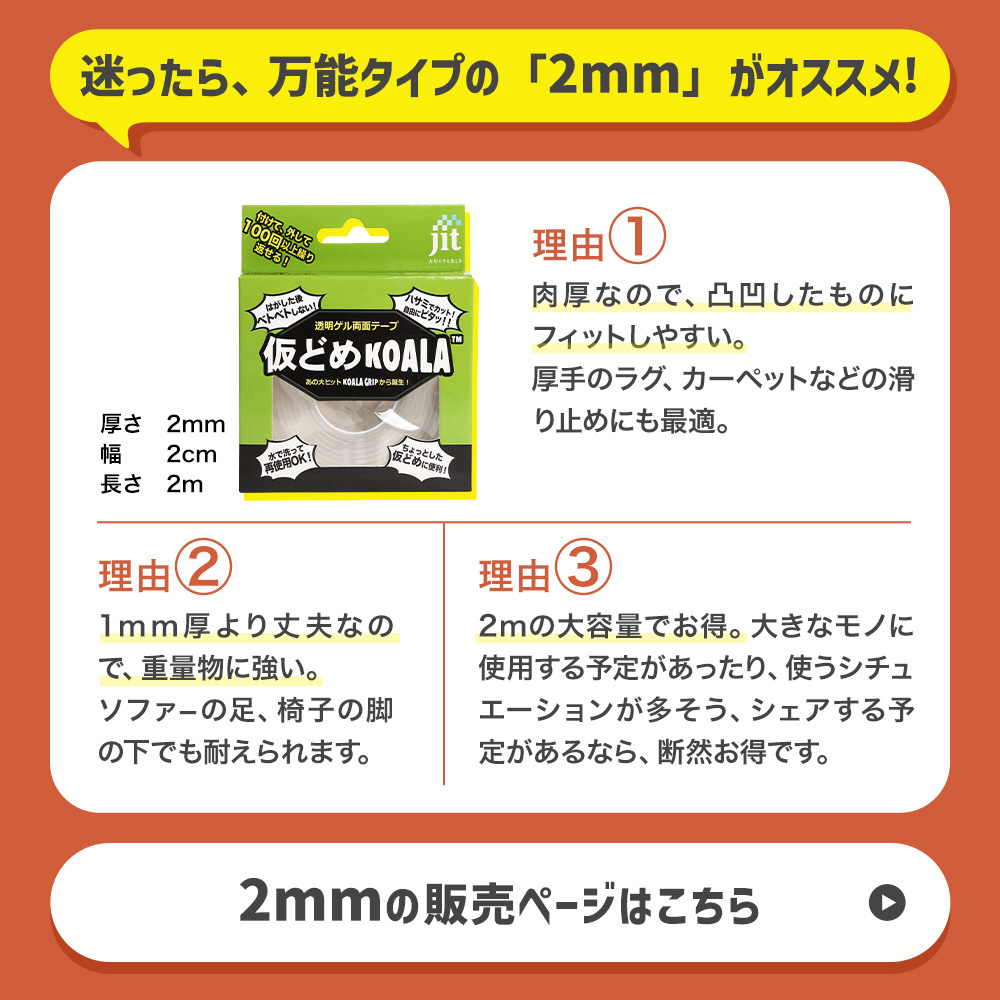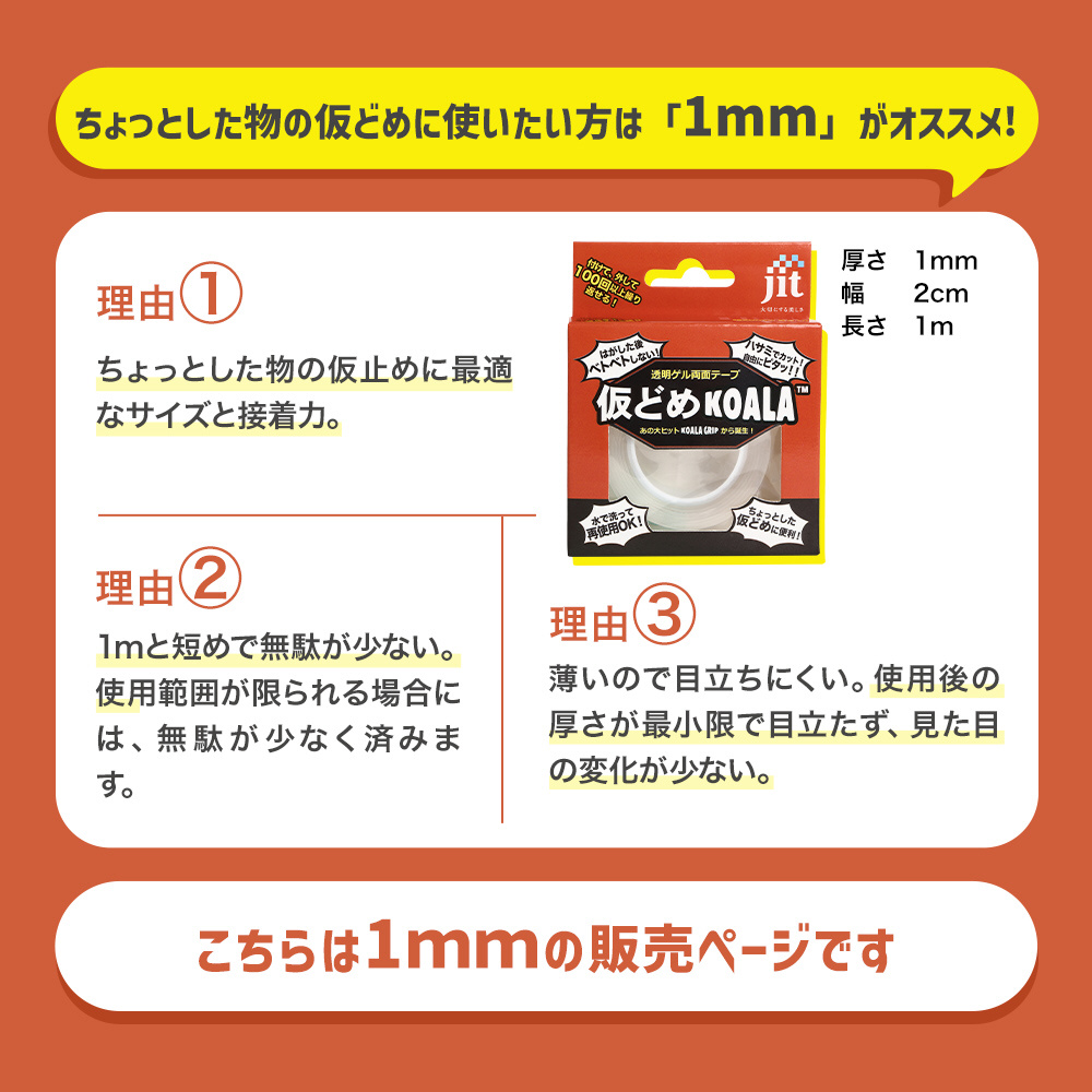 | 商品名 | 透明ゲル両面テープ 仮どめコアラ 1mm厚 JK-02 【864】 |