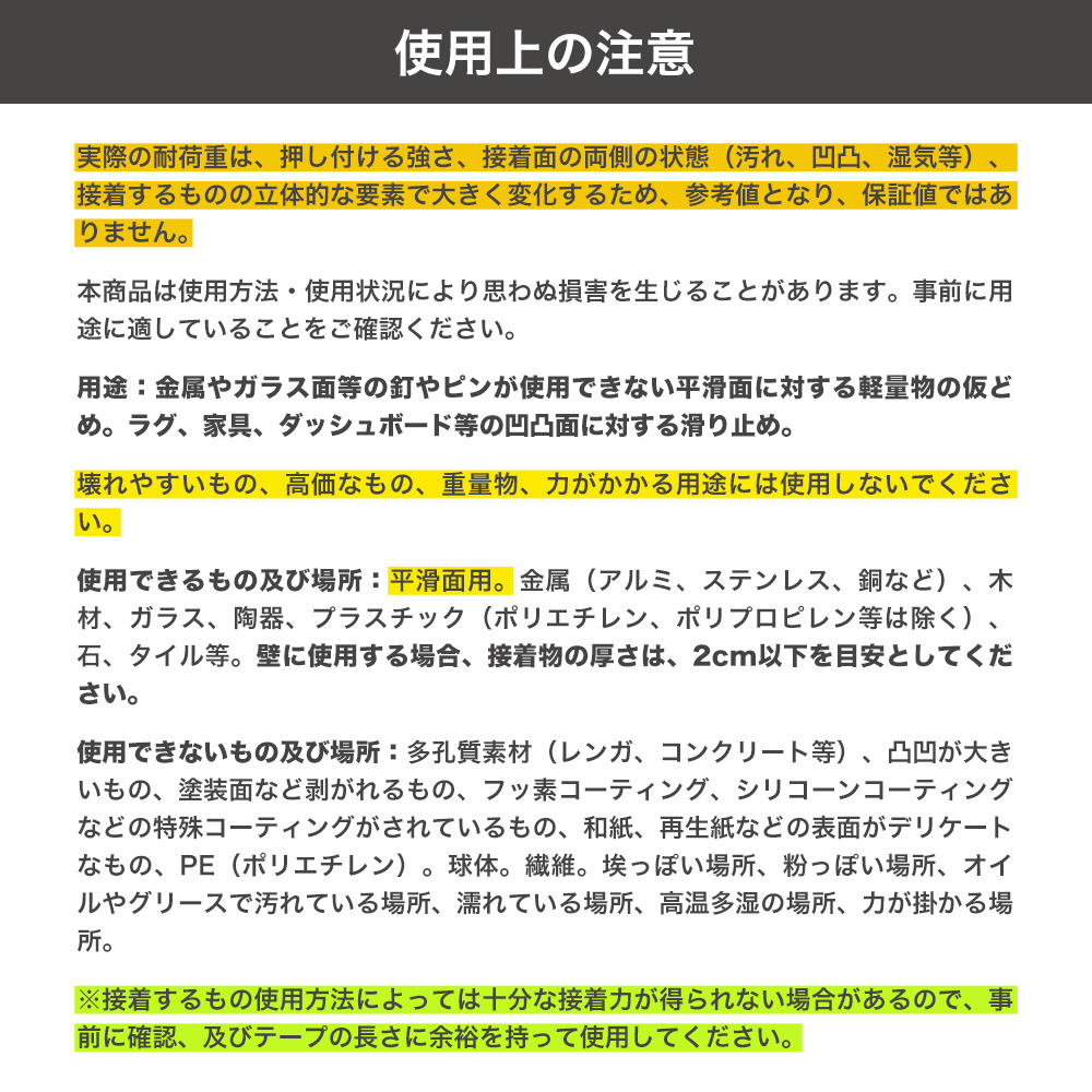 ・木材や画鋲などが使えない壁への掲示物設置などに便利です。
