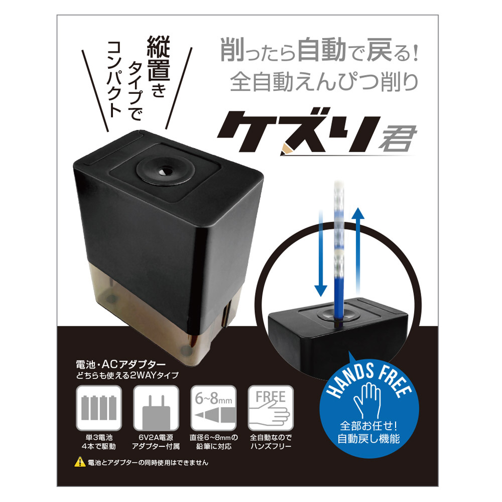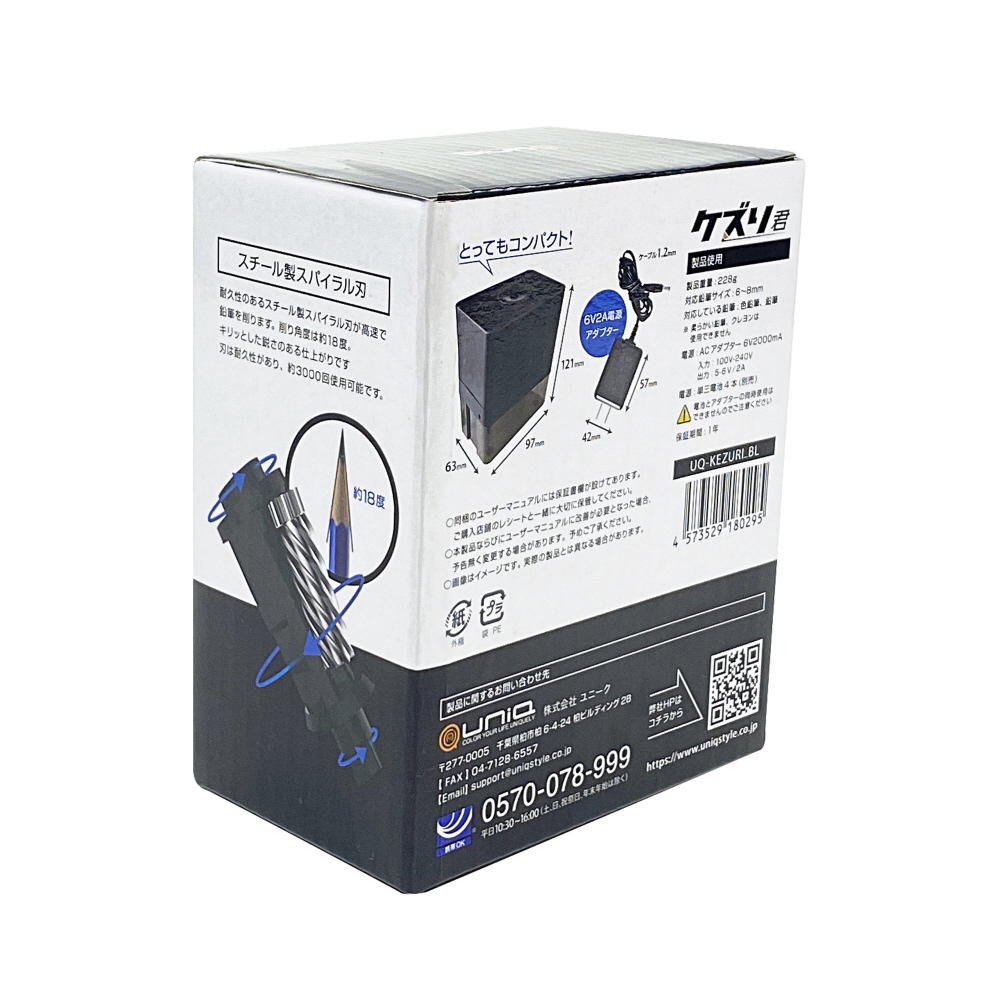 | 商品名 | 全自動鉛筆削り 「ケズリ君」 Black(ブラック) UQ-KEZURI_BL [自動タイプ] |