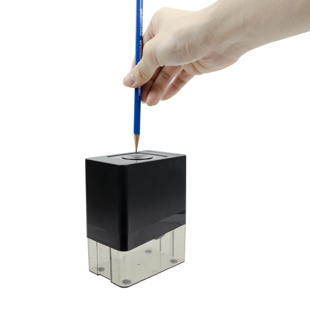 縦タイプ&全自動なので、鉛筆に無理な力が入らず片側だけ削れてしまった、といったことが起こりません。 しかも適切に削ってくれるから無駄削りを防止してくれます。