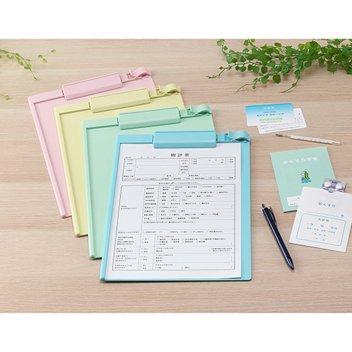 | 仕様1 | 色:ライトブルー、ピンク、ライトグリーン、イエロー/4色 商品サイズ:323×234mm 本体材質:再生ABS樹脂 ペンホルダー付(直径Φ7.5?15mm対応) |