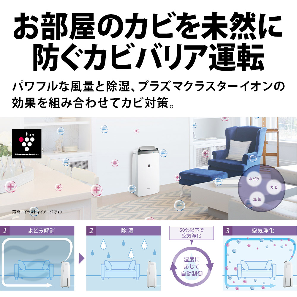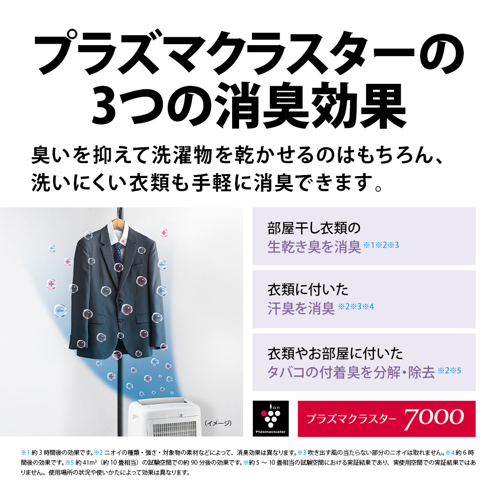 プラズマクラスターの風が、ニオイを寄せ付けず、パワフルに乾かす「衣類乾燥」除湿機。