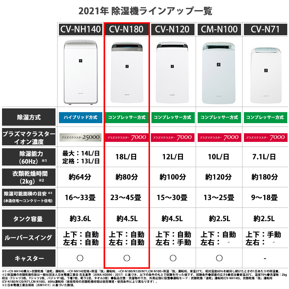 除湿機 ホワイト系 CV-N180-W [コンプレッサー方式 /木造23畳まで /鉄筋45畳まで]