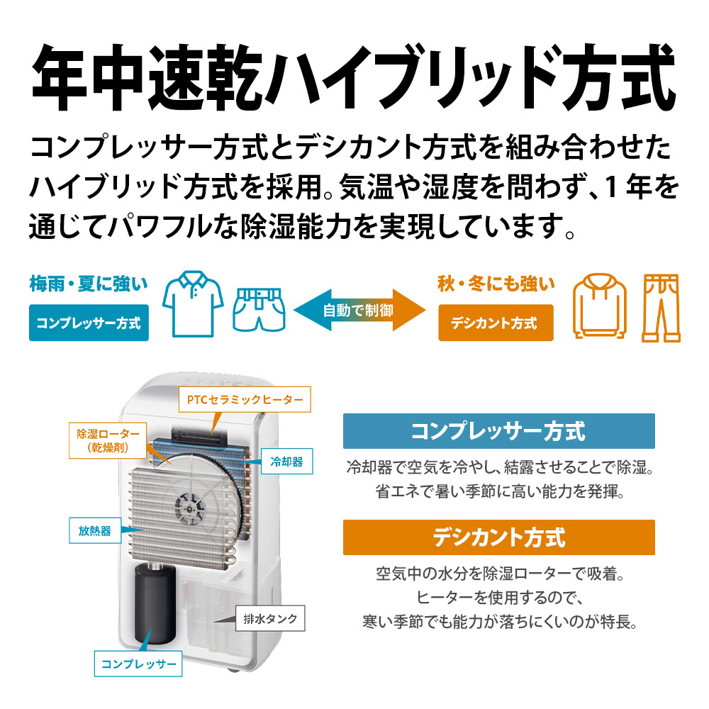 除湿機 ホワイト系 CV-NH140-W [ハイブリッド方式 /木造18畳まで /鉄筋35畳まで]