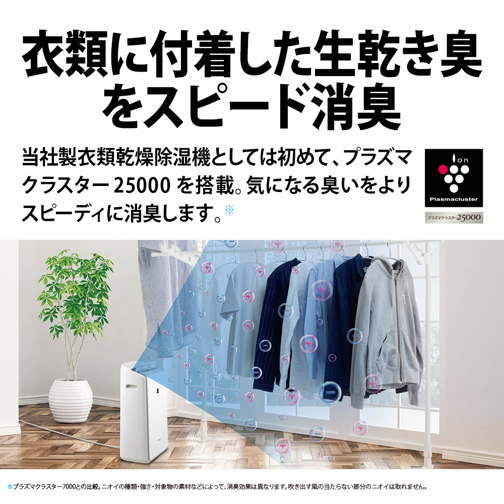部屋干し衣類をカラッと清潔に「プラズマクラスター干し」。