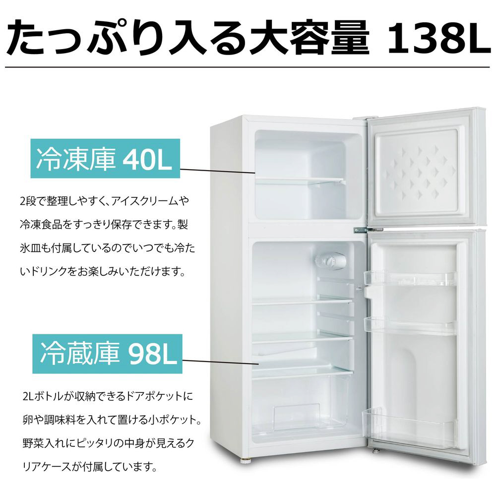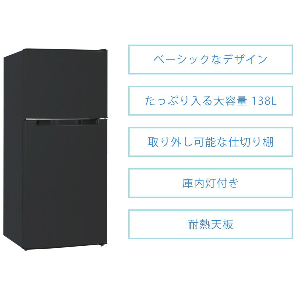 直冷式冷蔵庫 TOHOTAIYO ブラック TH-138L2BK [138L /2ドア /右開き/左開き付け替えタイプ]