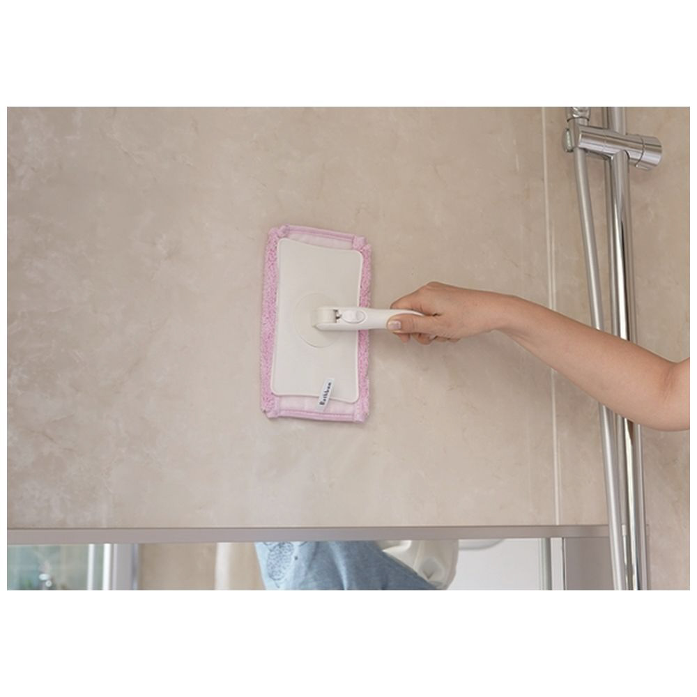壁や天井のカビをしっかり防ぐ!マイクロファイバーのモップ糸でしっかり吸水。壁や天井のカビをしっかり予防します。ハンドル柄が伸び縮みするので今まで届きにくかった浴室の壁や天井も腰に負担をかけずにラクラク吸水。ヘッドが取り外せ、ハンディとしても使用できます。ヘッドプレートは自由に角度を変えられるので離れた場所から隅々まできれいに吸水できます。抗菌防臭加工済みなのでバイキン、ニオイの発生を防ぎます。