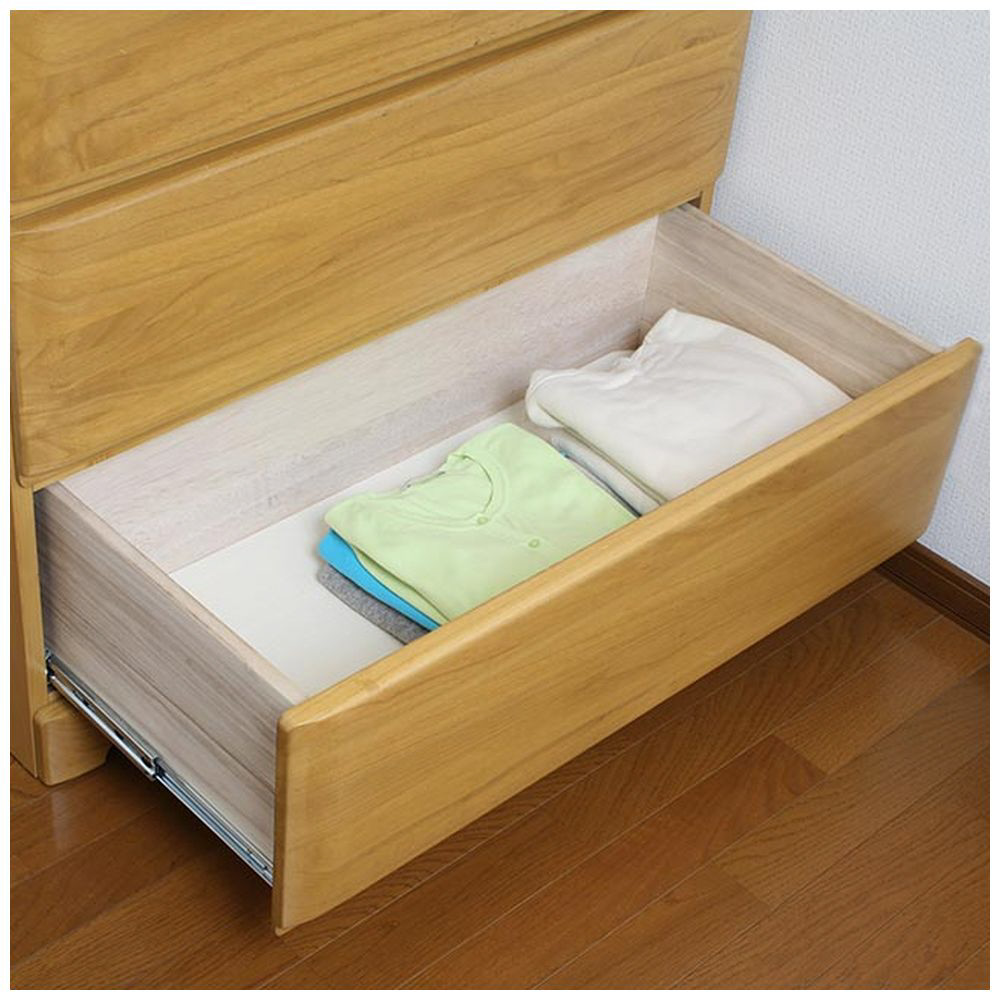 下からの湿気や汚れを防ぎ、収納物を清潔に保ちます。本体のポリエチレンシートに抗菌加工を施した収納シートです。下からの湿気からくるカビの発生や汚れを防ぎ、衣類や収納物を清潔に守ります。クッション性があり、押入れの床面や食器棚の棚板などに付くキズを防ぎます。表面にはフィルムを貼っていますので、汚れても拭き取りやすく、お手入れが簡単です。
