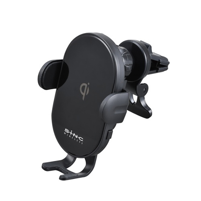 コイル感知センサーでアームが自動でスマホをホールドする無線充電可能なスマートフォンホルダーです。