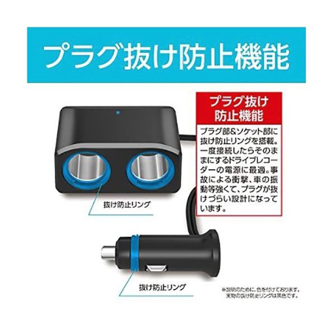 電源プラグ部のシリコーンリングが純正アクセサリソケットからの抜けを防止します。