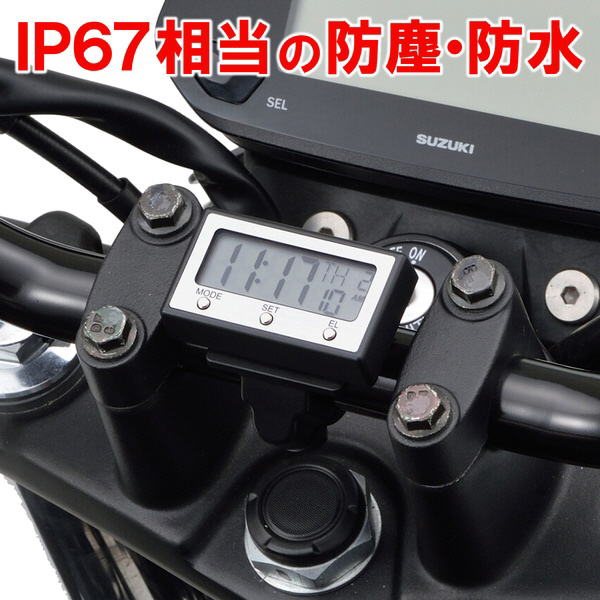 時計 防塵/防水 バックライト バイククロック 15132