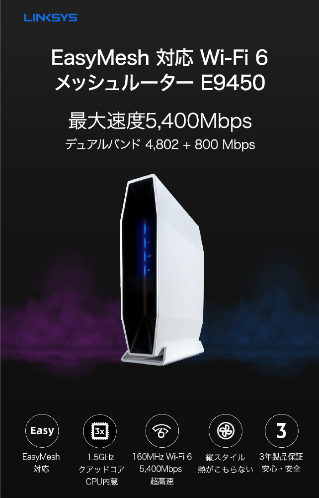 Wi-Fi 6 + メッシュWi-Fiルーター AX5400 デュアルバンド イージーメッシュ対応ルーター (4802 + 800 Mbps) ホワイト E9450-JP [Wi-Fi 6(ax)/ac/n/a/g/b]