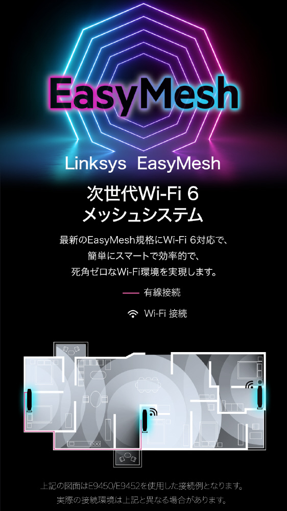 速度最大5,400Mbps Wi-Fi 6 EasyMesh対応ルーターEasyMesh対応で、他社対応ルーターともネットワーク構築が可能に