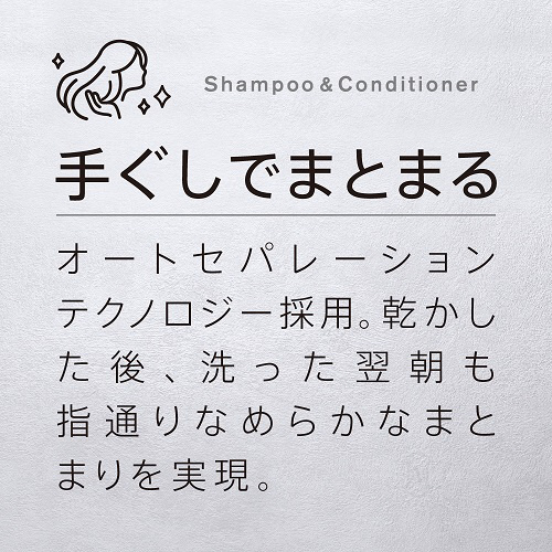 髪の摩擦を抑えて絡まりを防ぎ、しっとりまとまりやすい髪へ導きます。