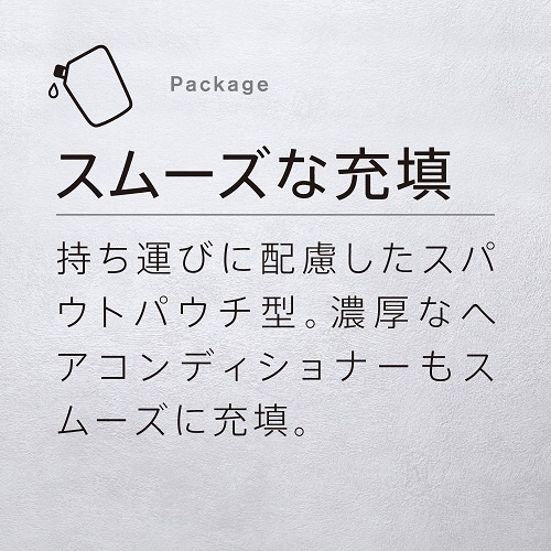 BIB(バックインボックス)タイプよりもつめかえロス(=残量)が減らせるパウチタイプ。
