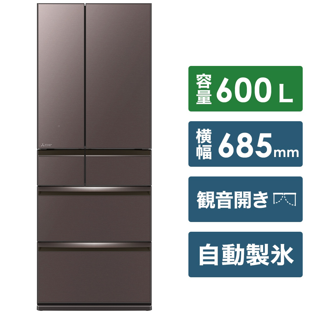 冷蔵庫 置けるスマート大容量 WXDシリーズ フロストグレインブラウン MR-WXD60G-XT [600L /6ドア /観音開きタイプ] 【基本設置料金セット】