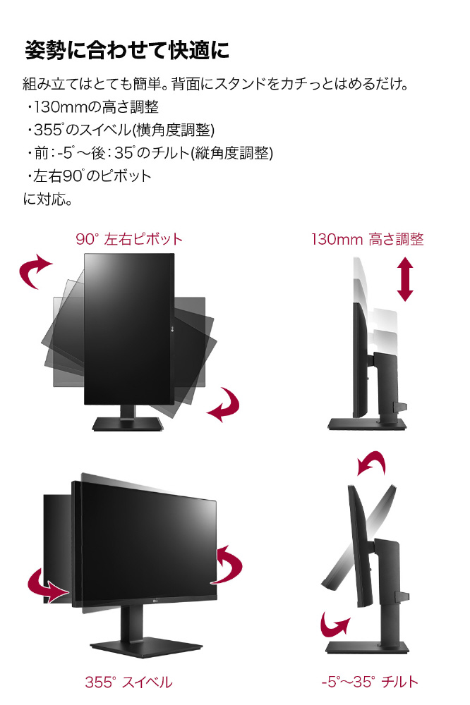 使いやすさを追求した23.8”WQHDモニター仕事を快適にするフレキシブルスタンドを採用