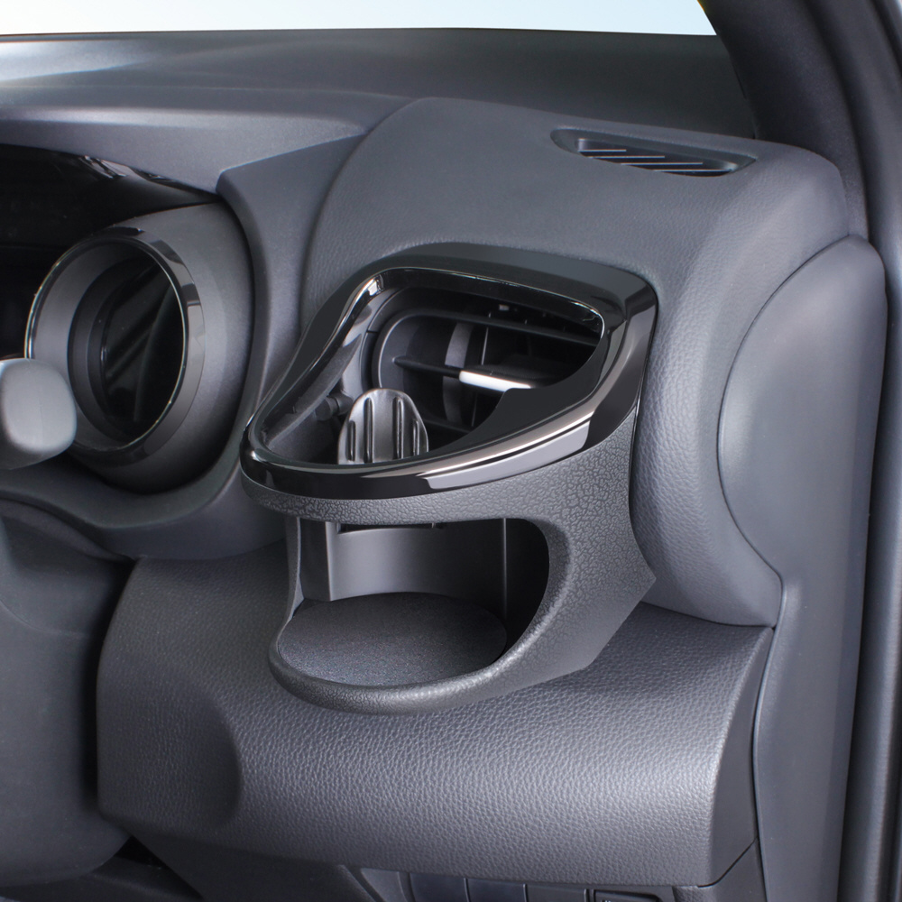 ●ヤリス(MXPH10/15・MXPA10/15・KSP210)・ヤリスクロス(MXPB10/15・MXPJ10/15)・GRヤリス(GXPA16/MXPA12)の右ハンドル車の運転席側エアコン送風口パネルに取り付けできるドリンクホルダー。