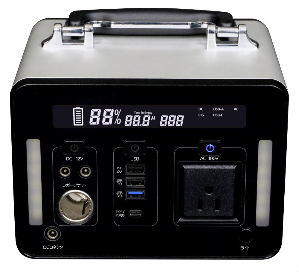 ■出力端子:AC100V ×1、DC12V 5A ×2、DC12V 10A ×1、USB2.0 ×2、QC3.0 ×1、TypeC(PD対応) ×1