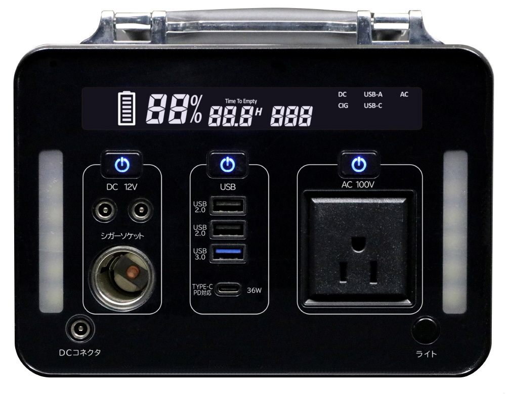 ■便利な3つの出力:DC出力/AC出力/USB出力