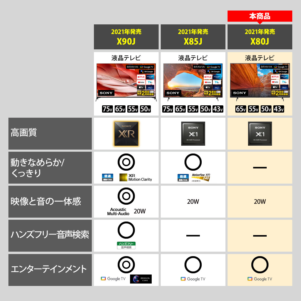 液晶テレビ BRAVIA(ブラビア) KJ-65X80J [65V型 /Bluetooth対応 /4K対応 /BS・CS 4Kチューナー内蔵 /YouTube対応]