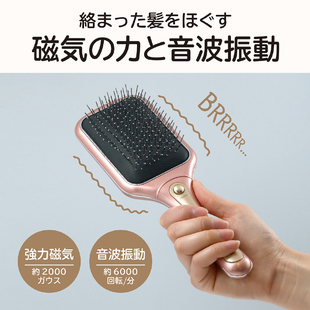 ■毎分6,000回転の音波振動で髪のからまりを軽減。サラツヤ美髪に。強力磁気2000ガウス。