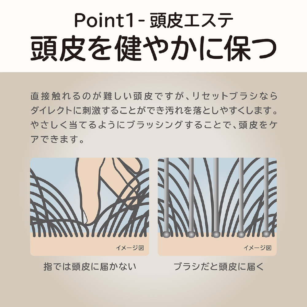 ■音波振動磁気エステブラシ「リセットブラシ」。頭皮と髪に心地よい刺激を。