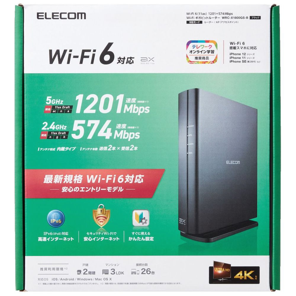 商品名 Wi-Fiルーター ブラック WRC-X1800GS-B [Wi-Fi 6(ax) /IPv6対応]