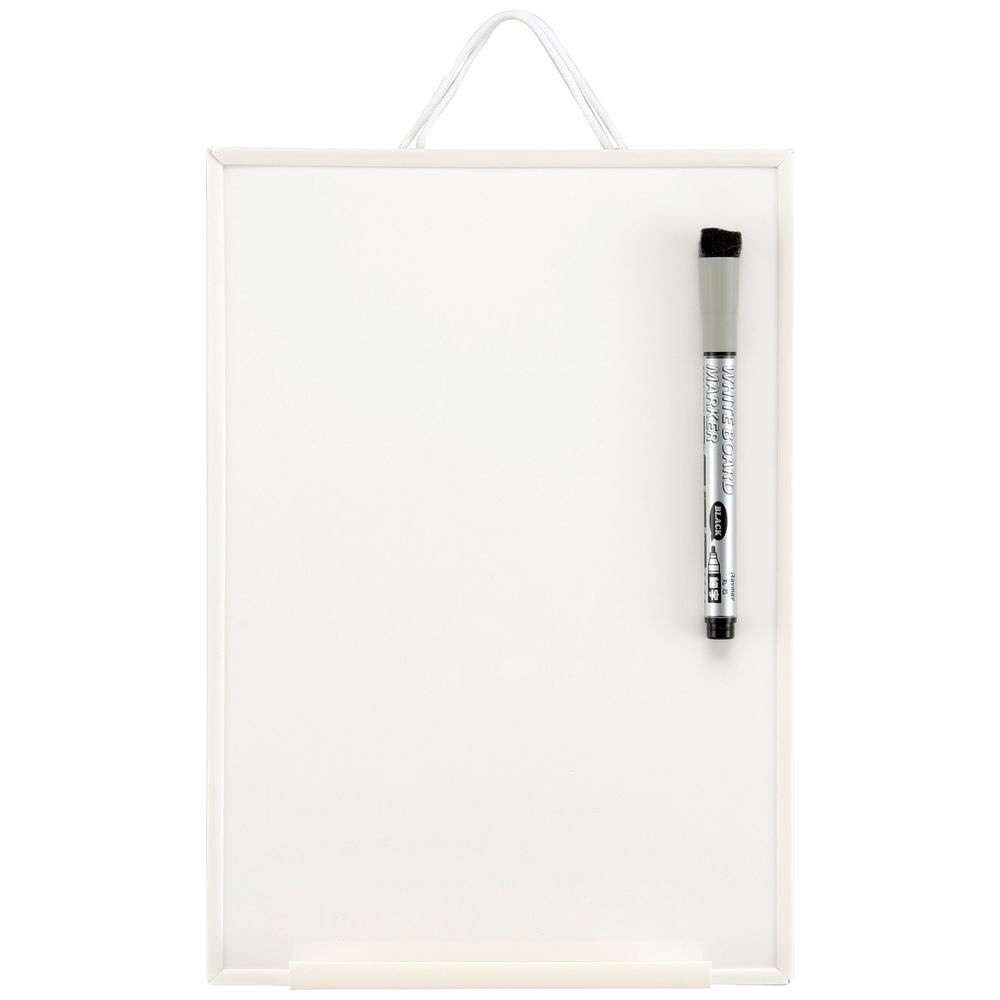 | 仕様1 | サイズ:A4 本体サイズ:W210 x H300 x D7mm(受け皿取付時:D27mm) 筆記面サイズ:W198 x H289mm 本体重量:220g(包装資材含む) 素材:ボード面=スチール、フレーム=PP、裏面=段ボール・マグネット 仕様:タテ・ヨコ両用 付属品: ボードマーカー(直液式細字/黒インク)1本 受け皿(W15cm)1コ 吊り下げヒモ(35cm)1本 吊り下げ金具 2コ |