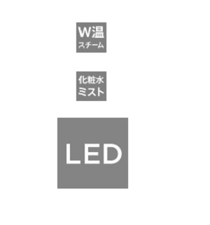 約40℃に肌温度を上げる、Wスチームを浴びる、微粒子の化粧水ミストを浴びる、5色のLEDを浴びる。