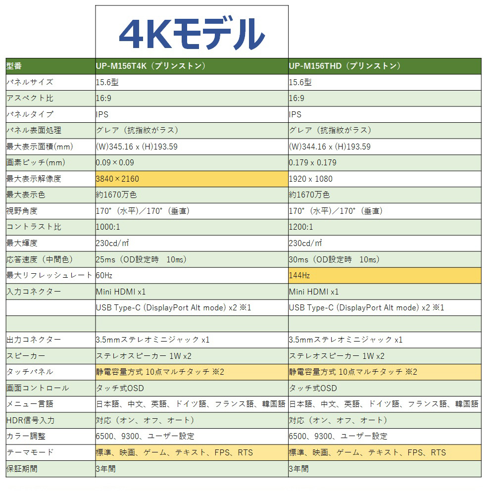 UP-M156T4K USB-C接続 ゲーミングモニター ULTRA PLUS(タッチパネル) ブラック [15.6型 /ワイド /4K(3840×2160)]