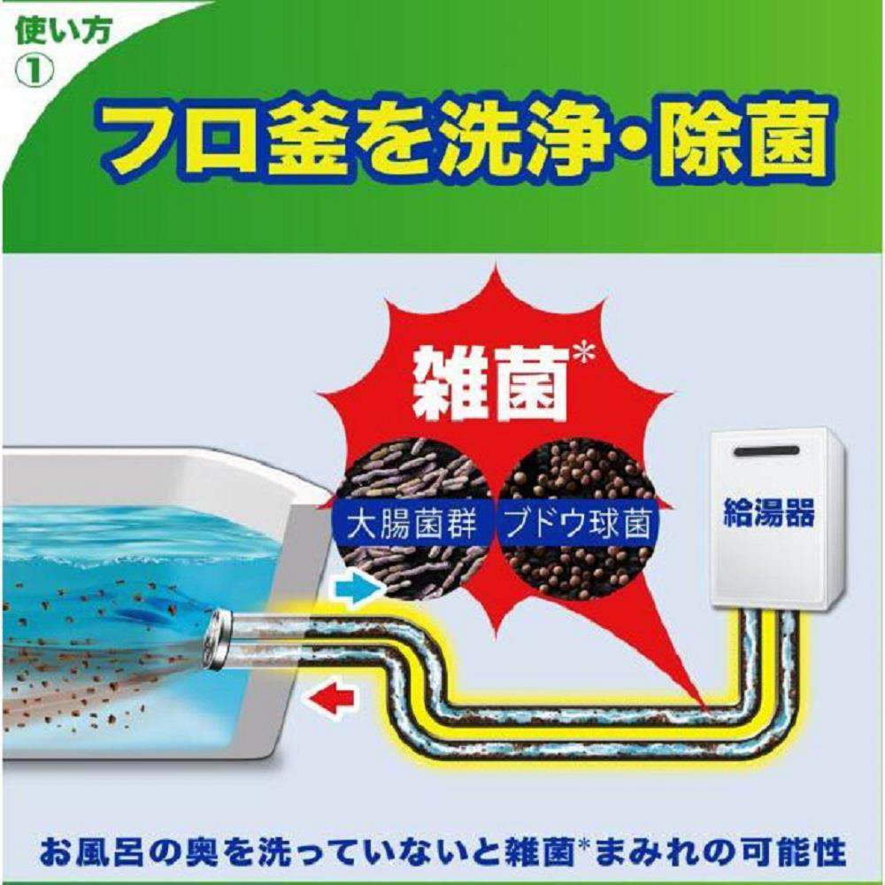 アクティブ発泡パワーで汚れを落とし、洗浄+99%除菌。水に入れた瞬間にアクティブ発泡パワーが強力発泡し、汚れや雑菌を取り除きます。フロ釜はもちろん、浴室小物にも。