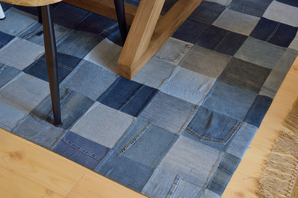 大好評だったジーンズラグに、大きいサイズが加わりました。デニム生地がパッチワーク状になった、ヴィンテージ感満載の個性的なデザインがとってもおしゃれです。