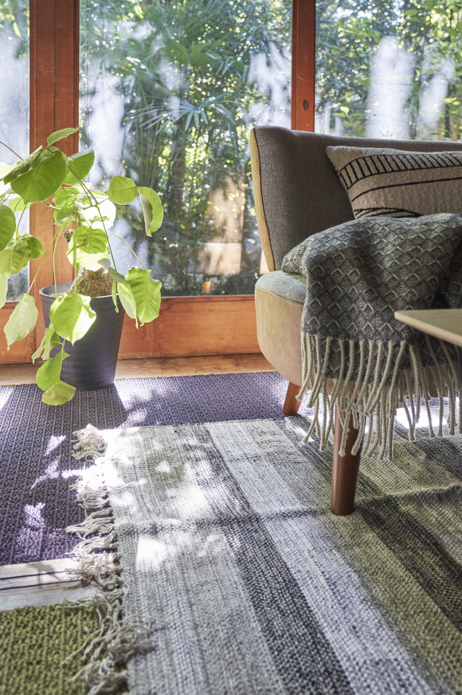 コットン100%で出来ているため、思わず素足で踏みたくなる肌触りです。コットンなので、硬くなく折りたたんで置いておくことが出来ます。落ち着いた色合いとデザインがモダンで大人な空間を作り出します。