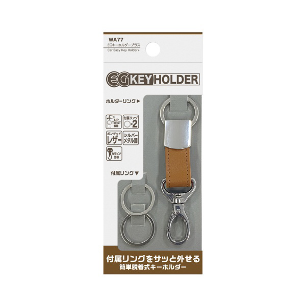 | 商品名 | 車内用品 キーホルダー シルバーメタル調 カラビナフック ボンデッドレザー 取り外しリング2個付き ブラウン WA77 |