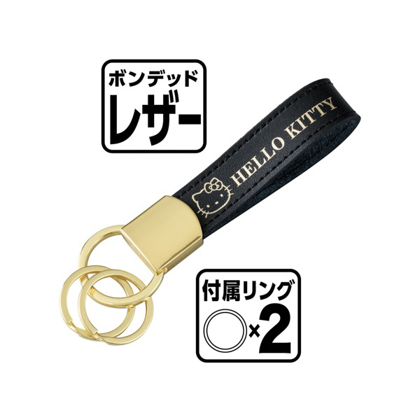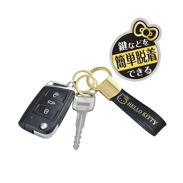 車内用品 ハローキティ キーホルダー ハローキティB&G カラビナフック 取り外しリング2個付き ブラック KT553