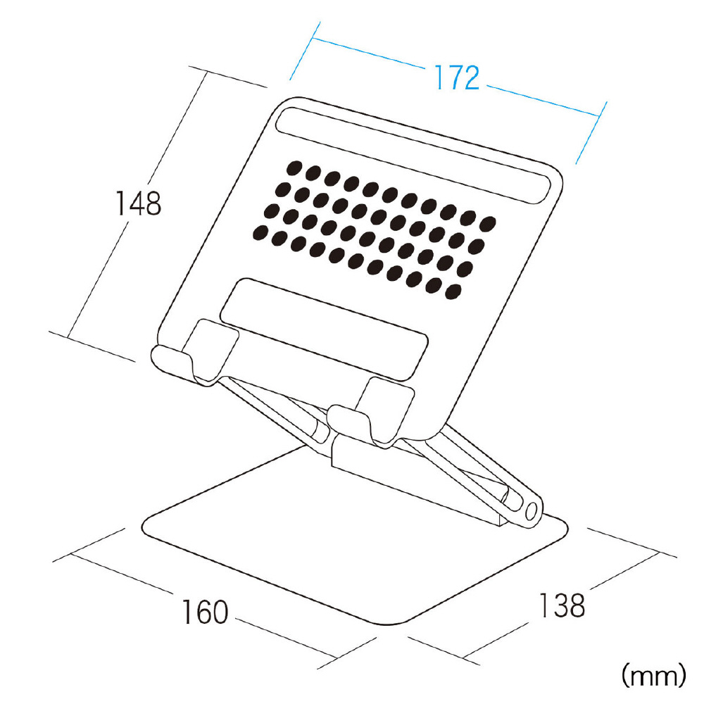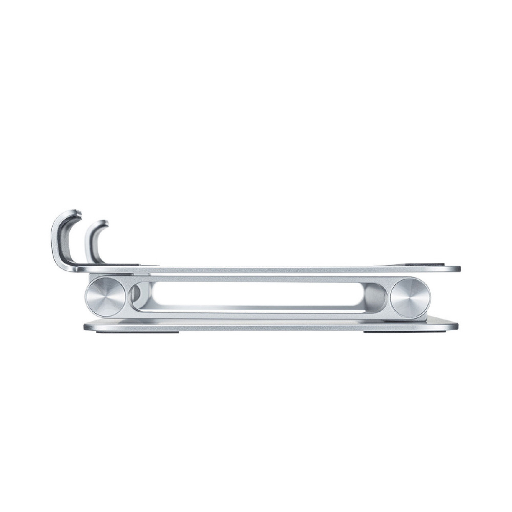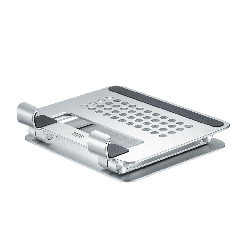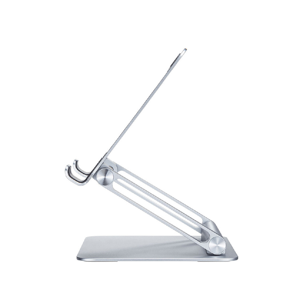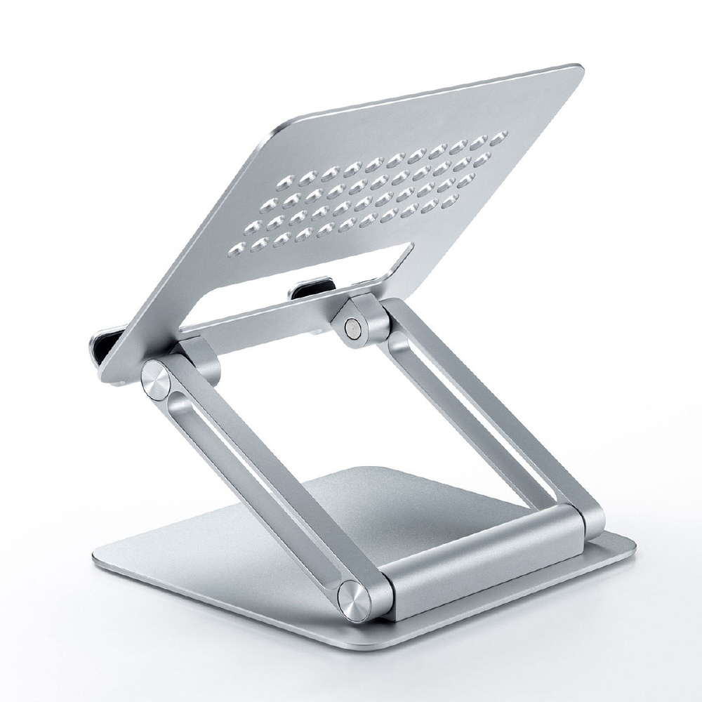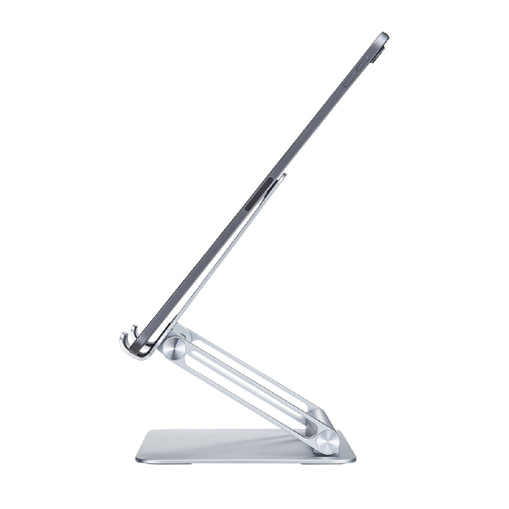 2つのヒンジを搭載し無段階で角度と高さが調整できる、折りたたみにも対応したアルミ製のタブレット用スタンド。