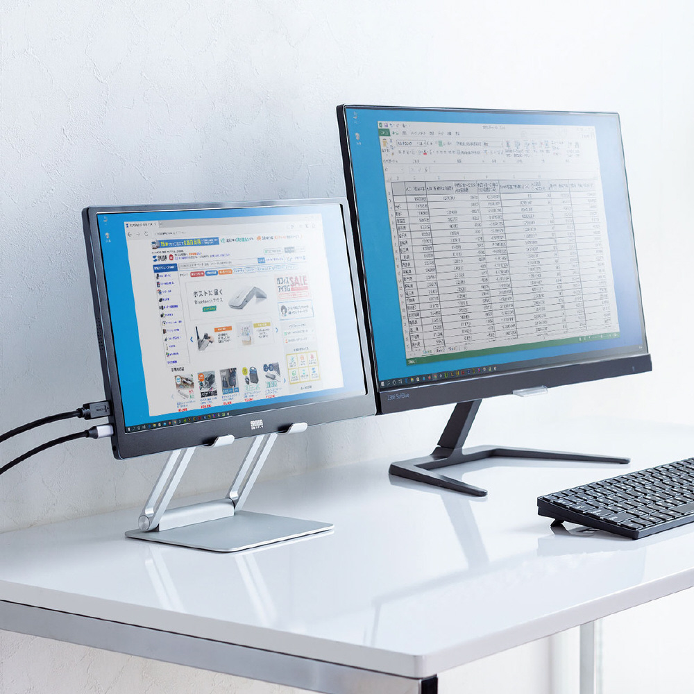 タブレットPC用[〜厚さ 16mm] アルミスタンド 角度・高さ調整タイプ PDA-STN49S 【864】