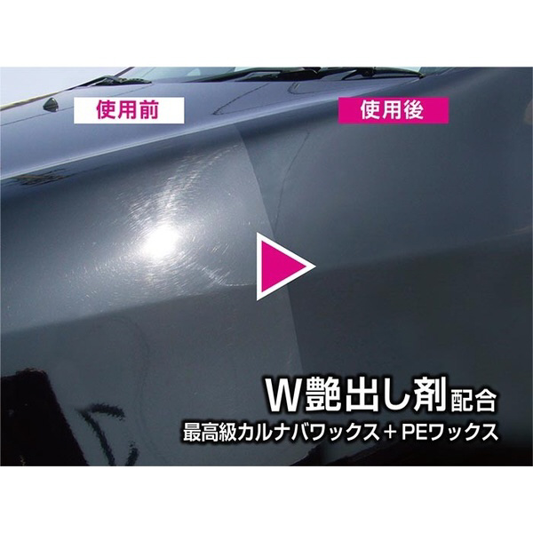 さらに、W艶出し剤(最高級カルナバ+PEワックス)が、ボディーに透き通る艶を与え、新車時のような輝きをが甦ります。