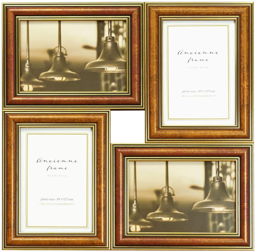L判写真4枚をおしゃれに飾れるアンティーク調マルチフレーム