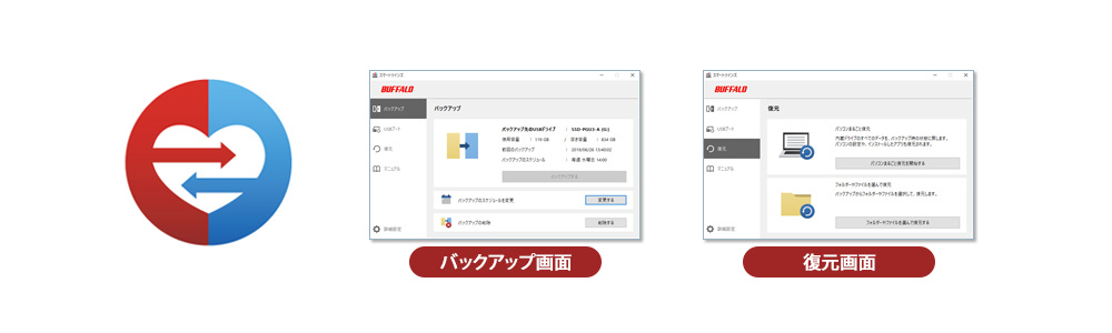 システムバックアップアプリ「スマートツインズ」で、万一の故障に備えて、データ領域もシステム領域も簡単にバックアップが行えます。